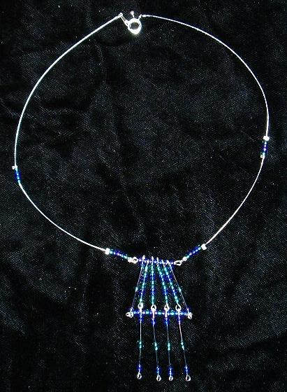 Zaggy necklace made of textured aluminium wire and glass beads with