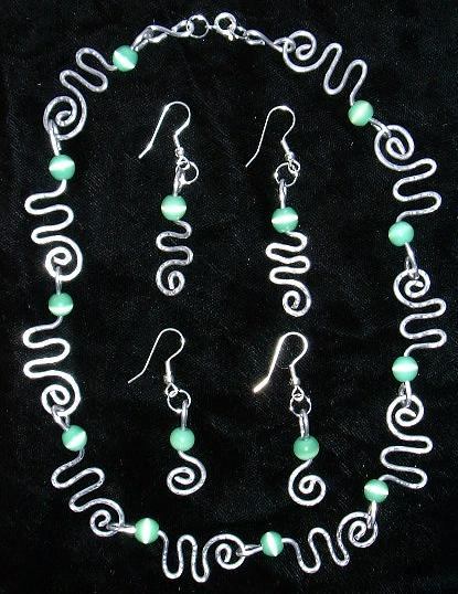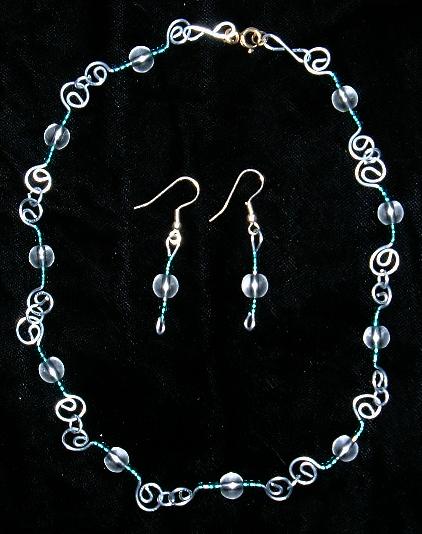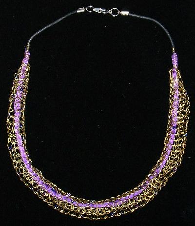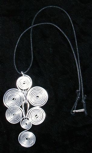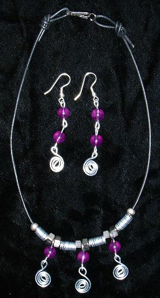 Necklace made of textured aluminium wire and glass beads with complimenting